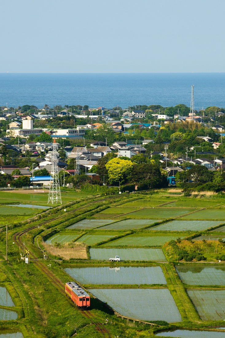 水の張った水田が初夏を感じさせます。(撮影地:いすみ鉄道西大原〜上総東)