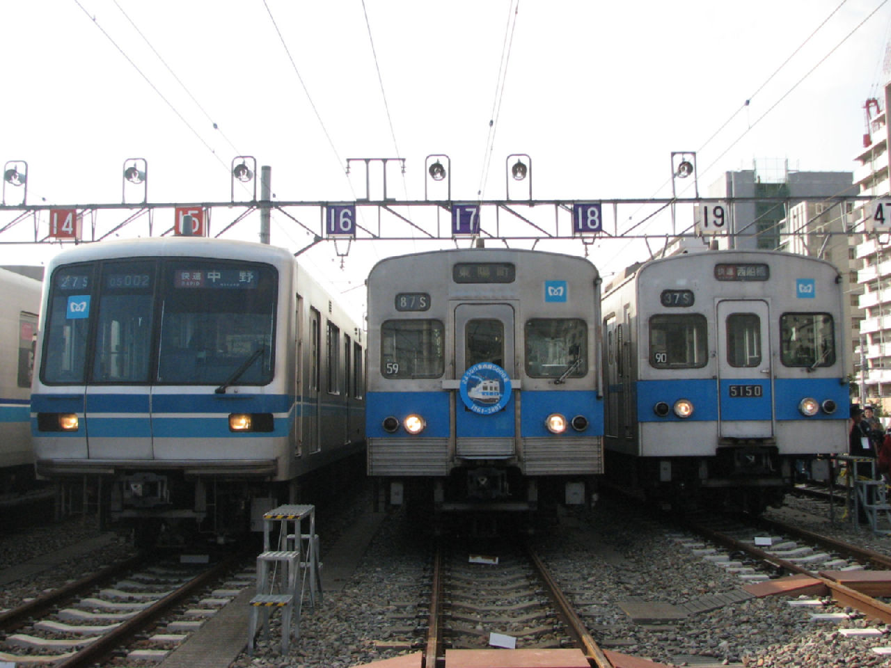 展示された車両は5000系のステンレスとアルミの両車に加え05系、新05系、有楽町線から転属してきた07系でした。5000系アルミ車と07系は車内が解放され休憩車両として使用されました。今回のイベント後まもなく5000系アルミ車は廃車されてしまうようです。