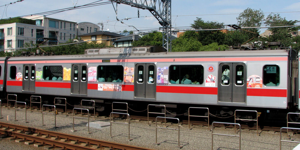 車体広告編成は今回も6000系の中でも戸袋のないタイプの編成が選ばれました。やはり広告を貼れるスペースの都合などからなのでしょうか。