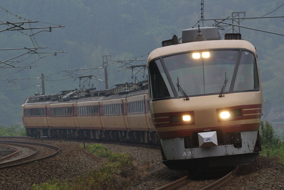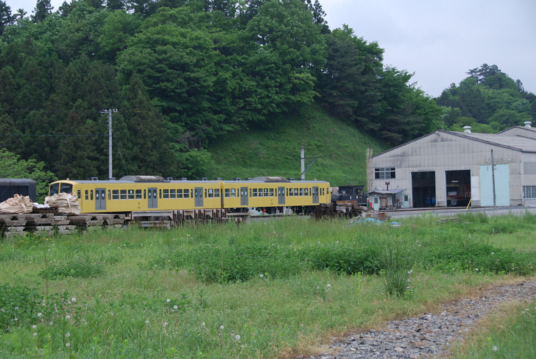 七尾線の415系800番台は網干の113系に交流機器を付けたもので、生粋の415系とは言えないものです。車両形式は同じでも常磐線などで活躍していた415系とは車両のつくりは全く違うものです。この"偽"415系とも言える車両も既に新製から40年を越えています。今年は和倉温泉開湯1200年ということで、記念してヘッドマークが取り付けられています。