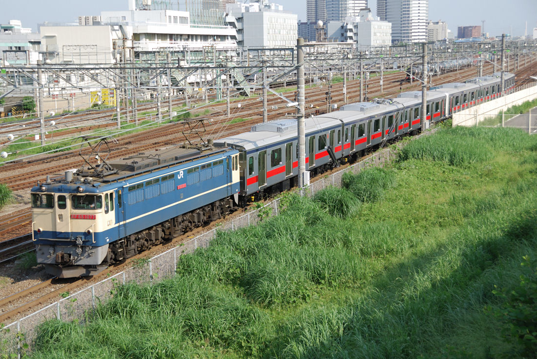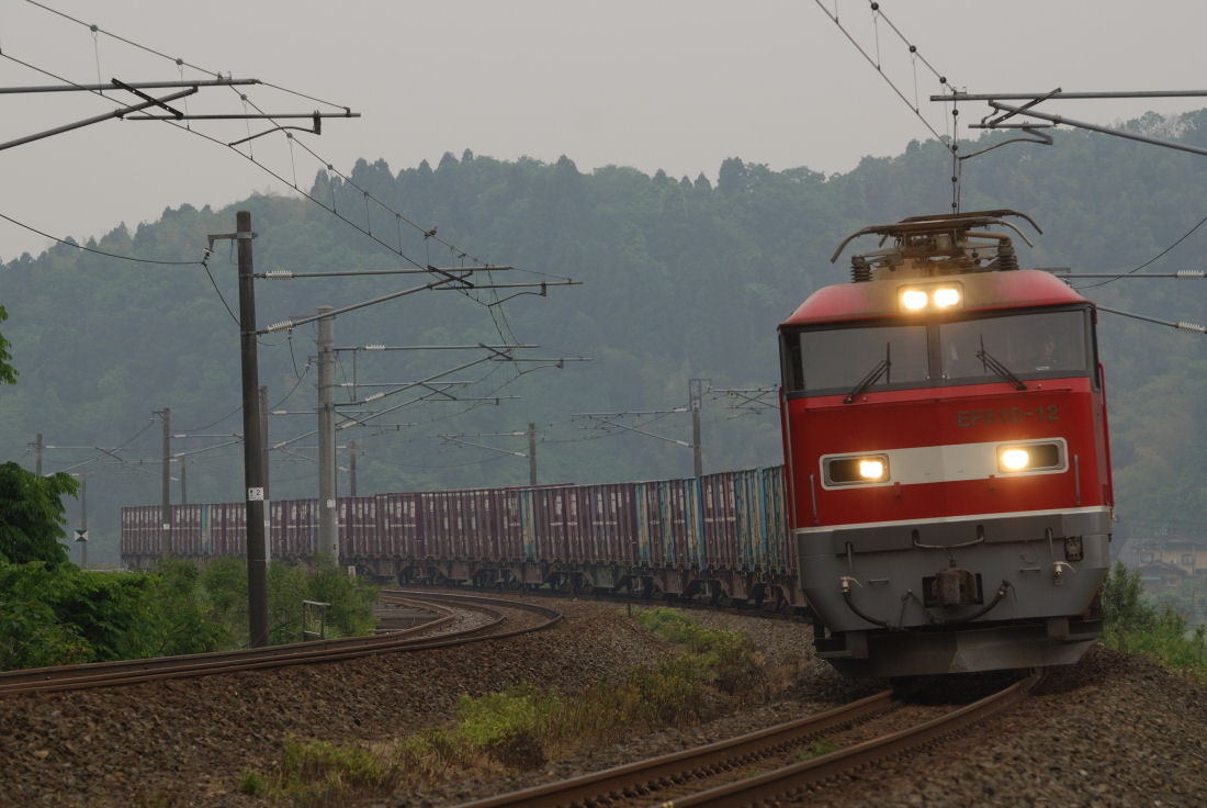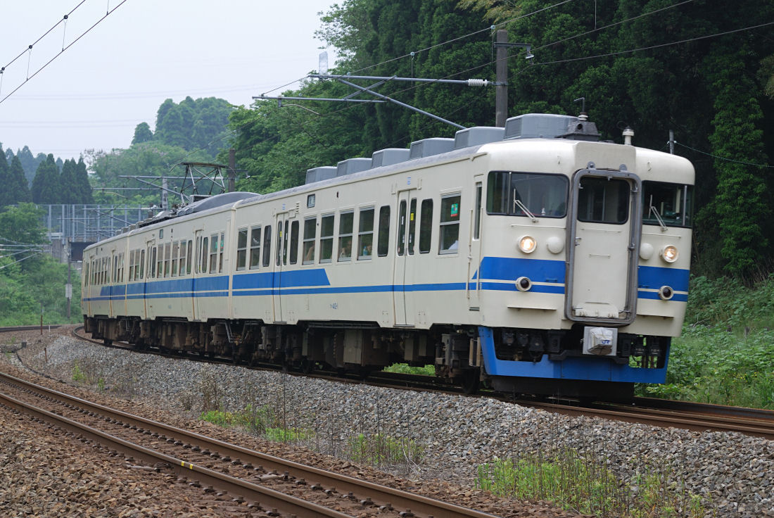 こちらは赤いヘッドマーク。いくつも種類があるようですが、415系には全て掲げらているようです。(撮影地:北陸本線金沢〜東金沢間)