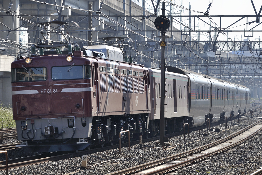 EF81-81+ゆうマニは東大宮へ。ここで折り返して当日中に尾久へ帰っていったようです。(撮影地:東北本線土呂駅)