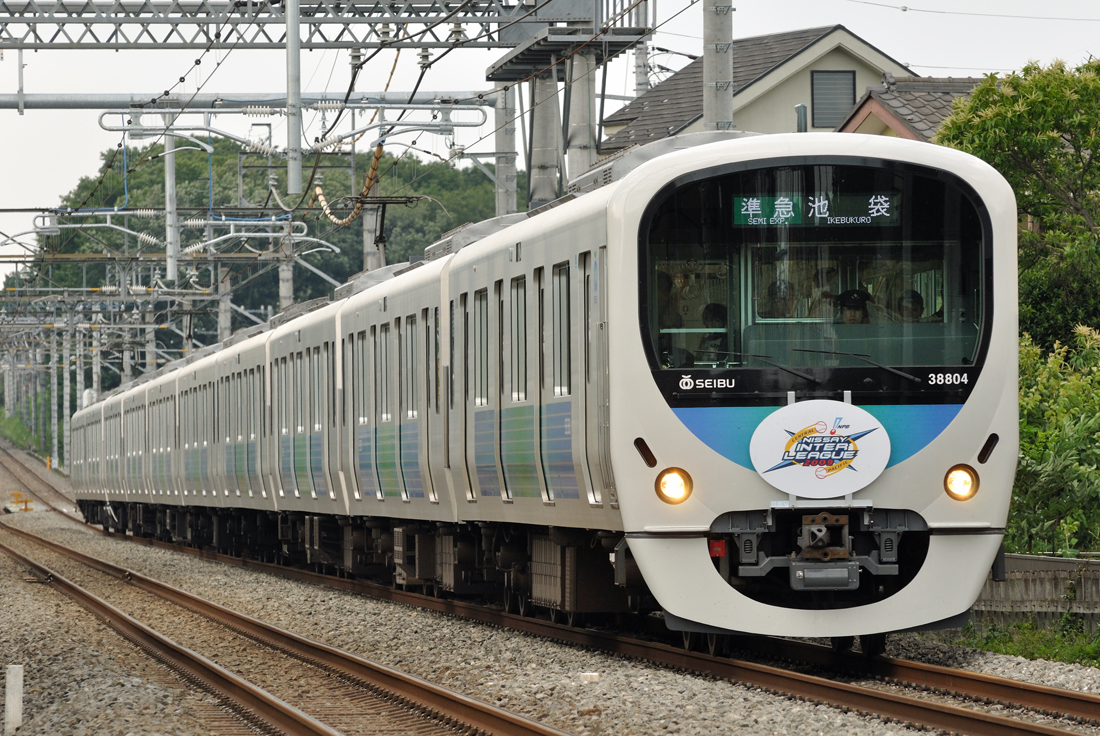 前パンの30000系(32101F+38103F)にヘッドマーク。この撮影地で前パンを撮るとどうも下が空く失敗することがしばしば…(撮影地:西武池袋線秋津〜所沢間)