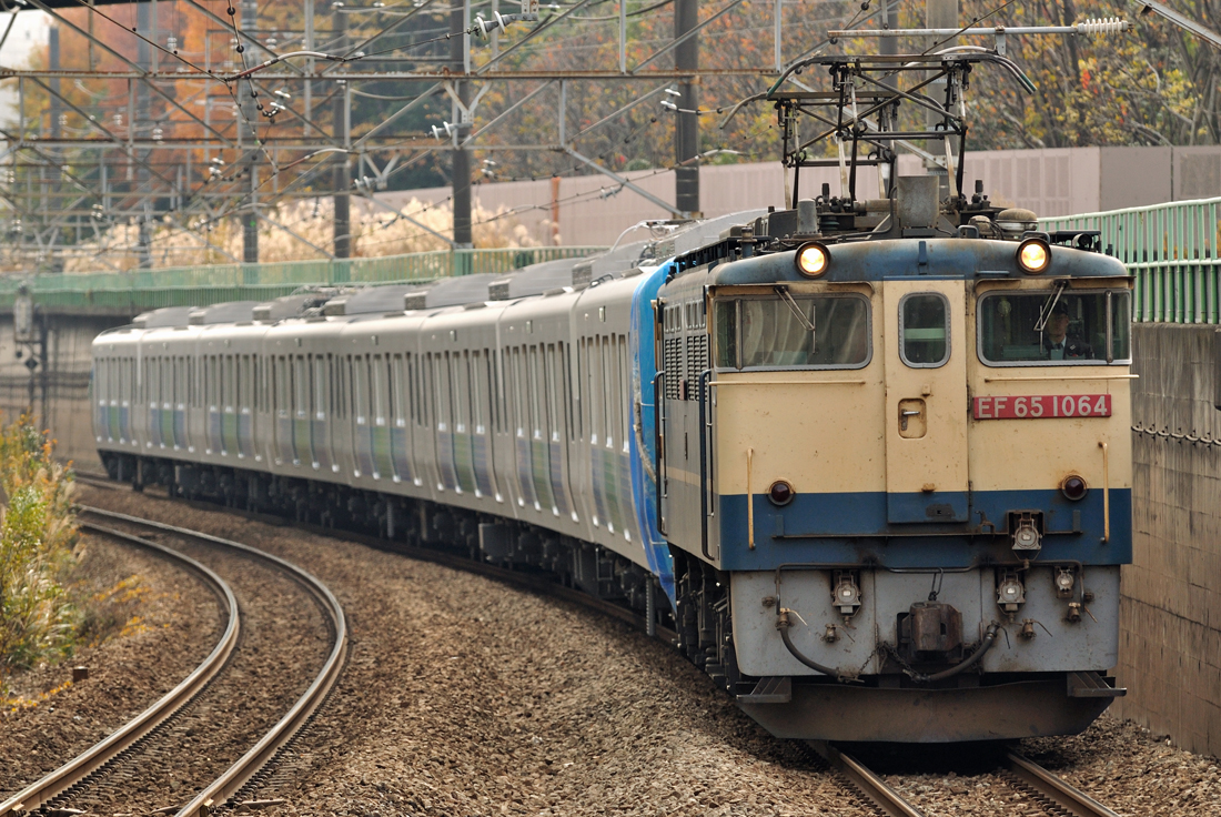 JR区間も合間に撮影に行きました。原色赤プレートのPF1069号機が牽引でした。EF65牽引の甲種自体が少なくなってきている昨今としては、大変ラッキーな充当でした。(撮影地:武蔵野線北府中駅)