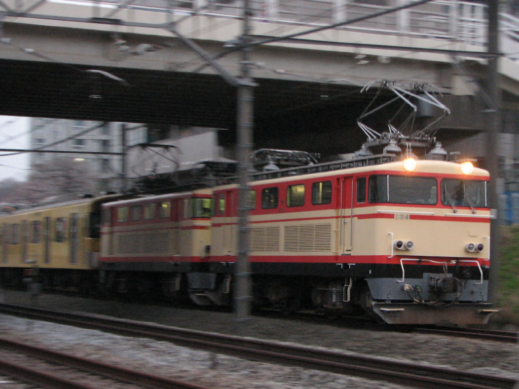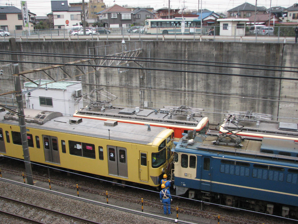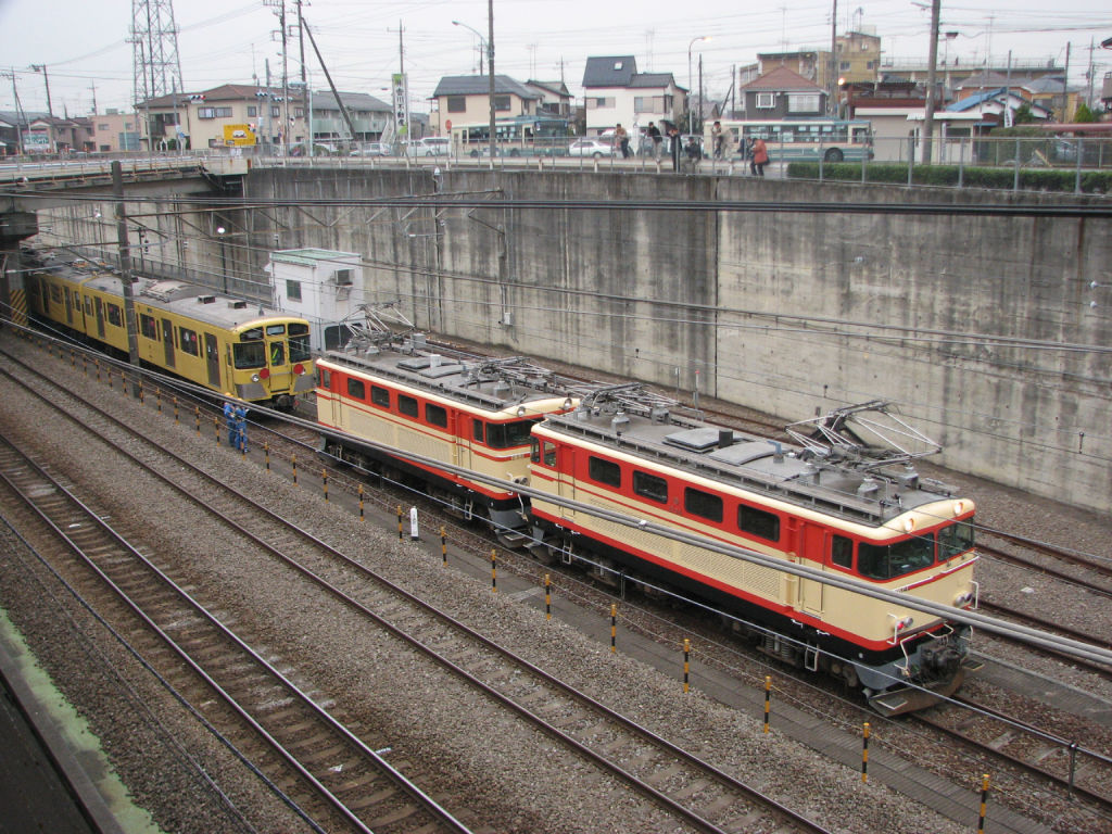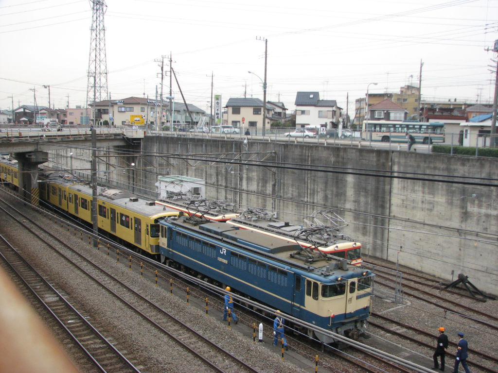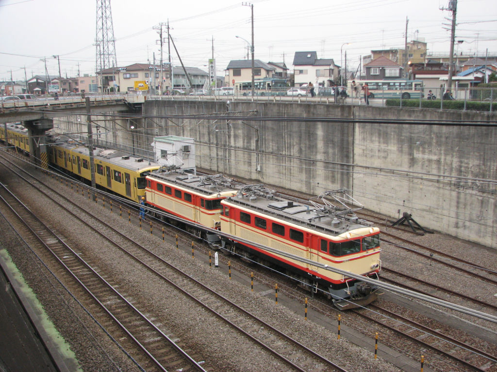 E33+E34の送り込みの続きです。実のところ時間がよく分かっておらず、新秋津付近で30分以上たたずんでいましたが。やっとのことで9102Fが到着。EF65 1167に牽引されてやってきました。場所が微妙なため、架線がかなり五月蠅い写真ですが。下側の2枚は停車したあとの写真。JRの機関車と西武の機関車の並び。そうそう見られることではありません。もっとも根っからの西武ファンである私の視点はE31の方に行ってますけどw(16時少し前)