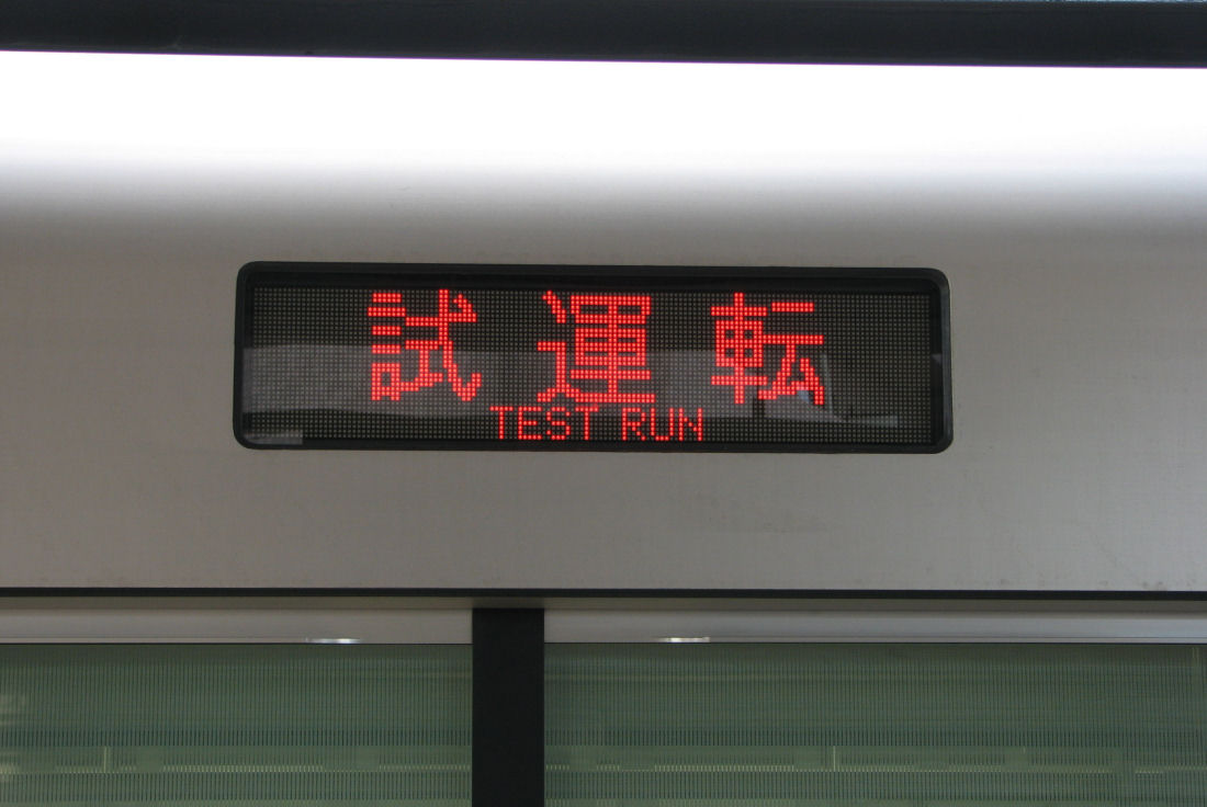 試運転のLED表示。6000系改造車とは違い赤文字でした。
