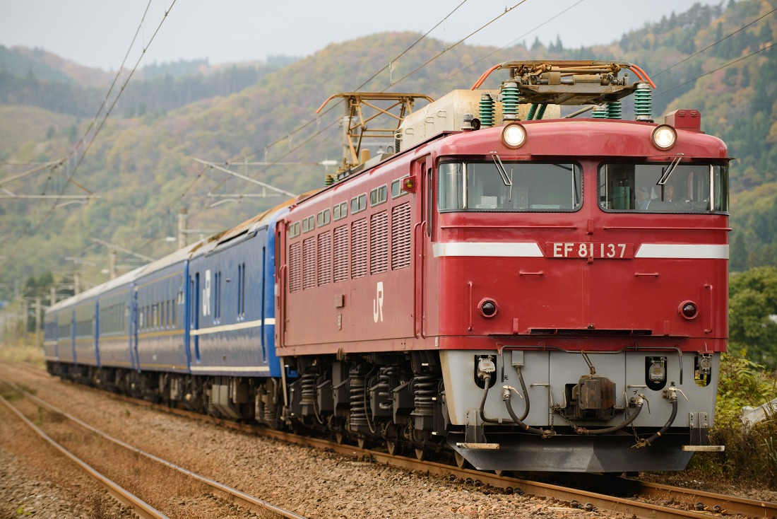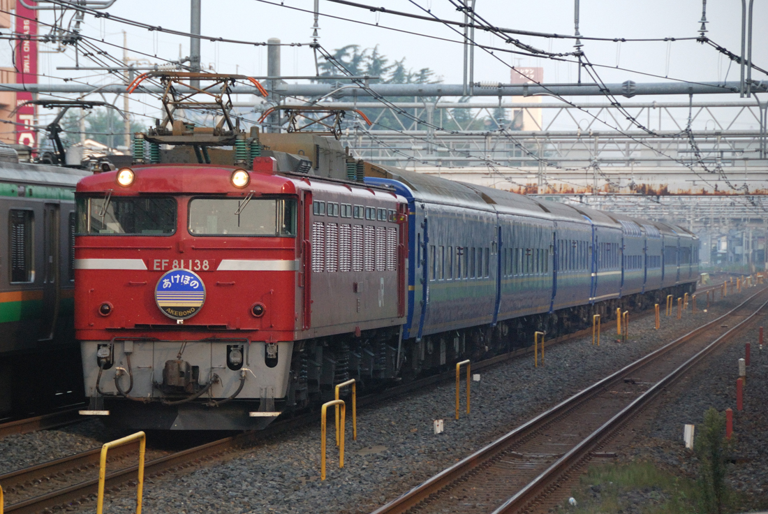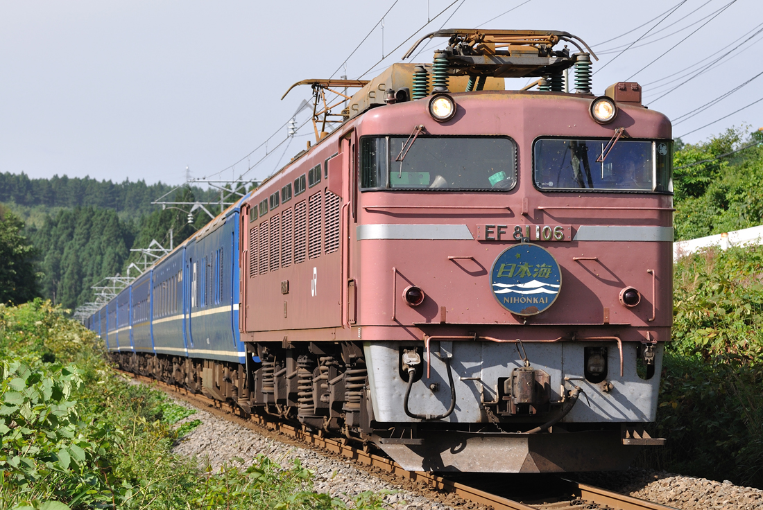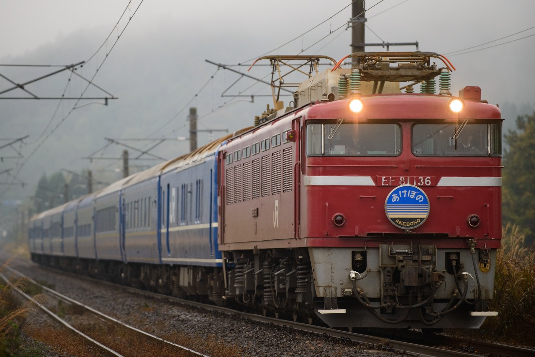 定期列車として廃止された寝台特急あけぼのですが、GWの期間には臨時列車として運転されました。好天に恵まれた5月4日の朝、西目〜仁賀保の俯瞰撮影地へ赴きました。臨時あけぼのは上りの青森発車が1時間繰り上がり、逆に下りは青森到着が1時間以上遅くなりました。その影響もあって、定期時代は夏にしか撮れなかった場所がGWでもらくらく撮影できるようになりました。西目俯瞰もそんなポイントの一つです。