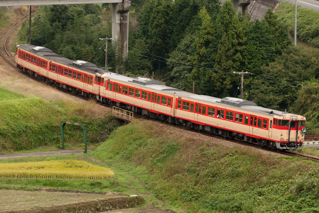 急行幕がシールなのが非常に残念でありませんが、手間がかかるのでシールにしたのでしょう。どうしてもシールだとちゃちく見えてしまうので、横目に撮ってます。冷水峠での撮影そのもは天候云々を別にすれば及第点。とりあえずことあとは気楽に追っかけました。