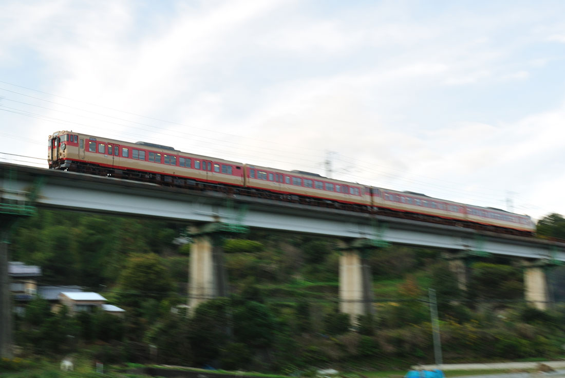 都合のついた23日のみですが、撮影に出掛けました。あいにく天候は優れず曇り〜小雨でした。長崎所属のキハ66系のうち2編成国鉄色になっており、その両方を団体臨時列車として仕立てたようです。稀にですが、朝夕ラッシュ時には国鉄色4両は定期運用でも見ることができます。(撮ったことはありませんが)