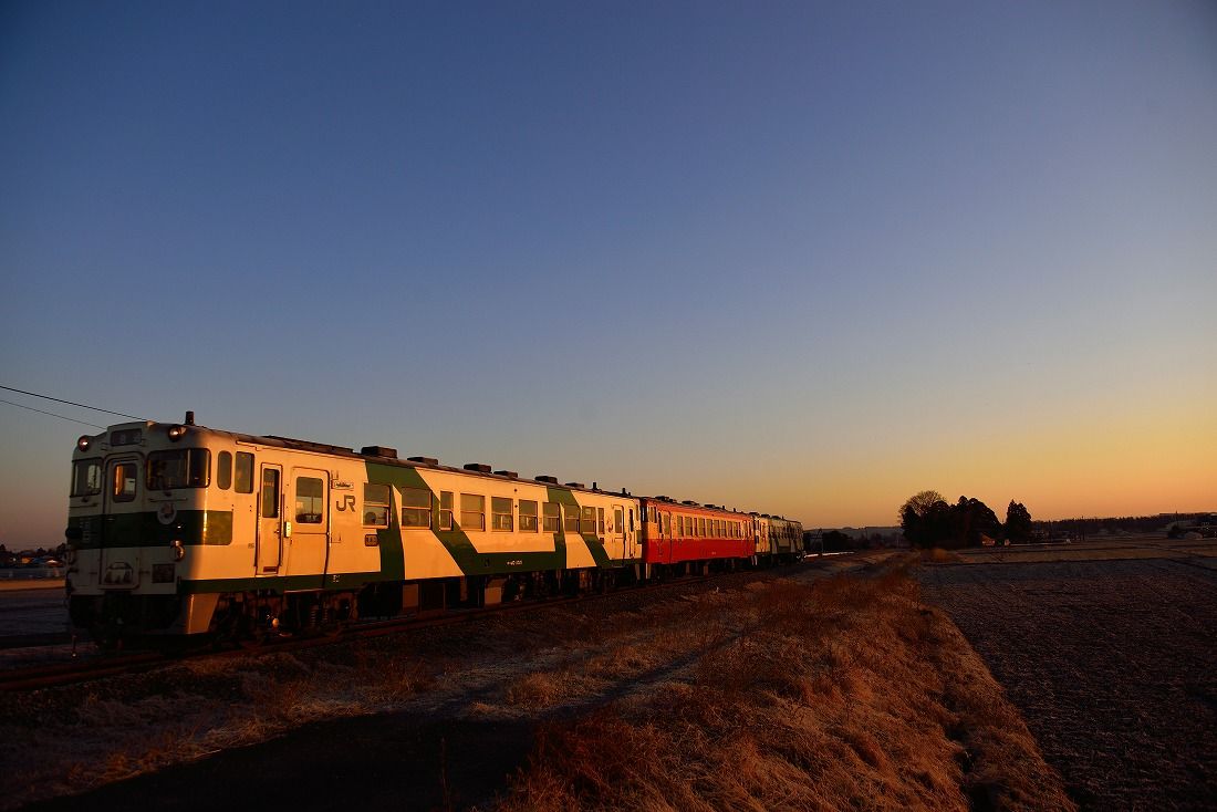 日の出前には烏山線の沿線に到着。素晴らしい日の出でしたが、死ぬほど寒かったです・・・