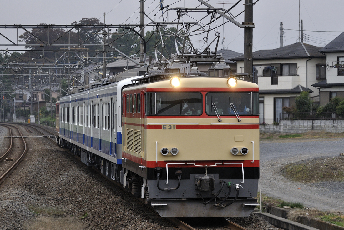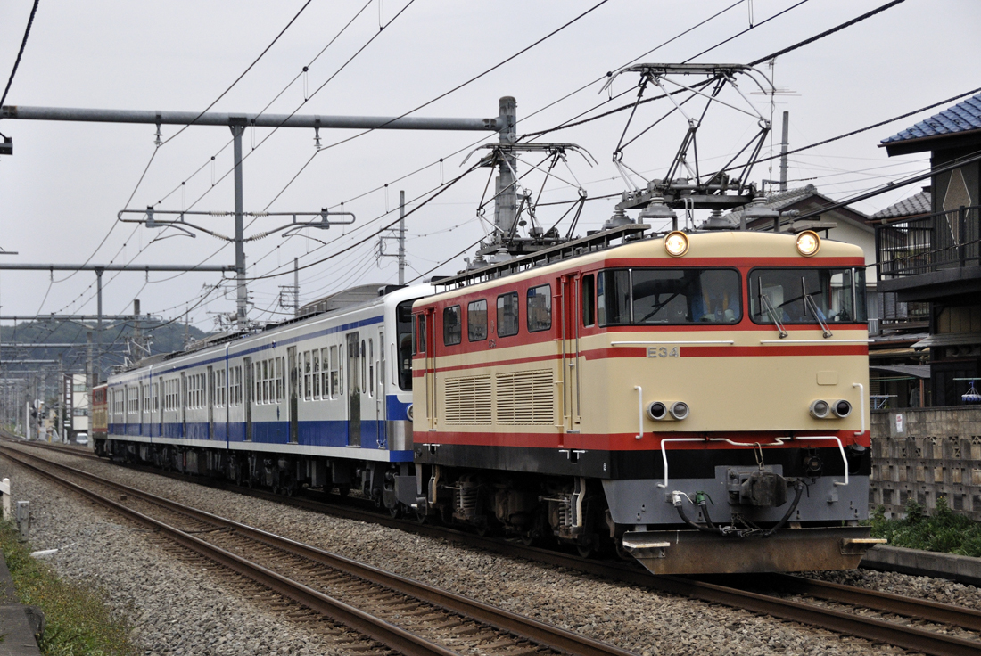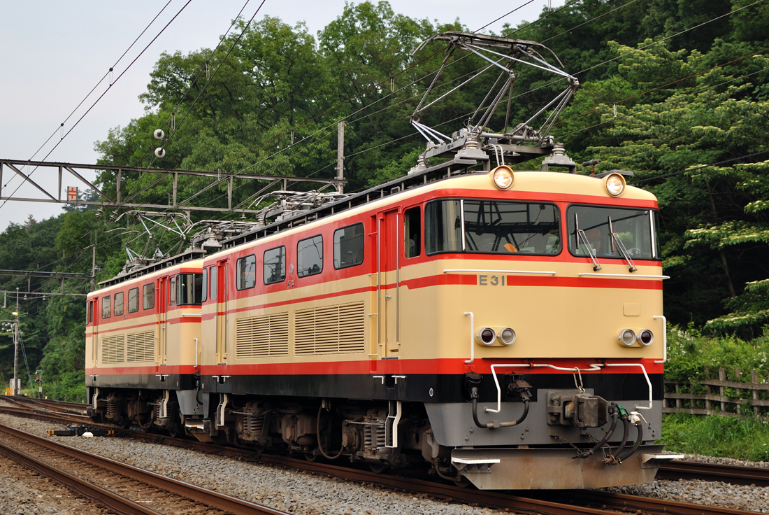 今回の登板はED32。全長約11mの可愛らしい電機です。(撮影地:伊豆箱根鉄道駿豆線三島二日町〜大場間)