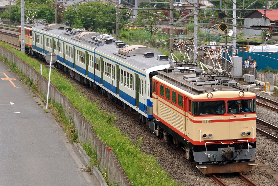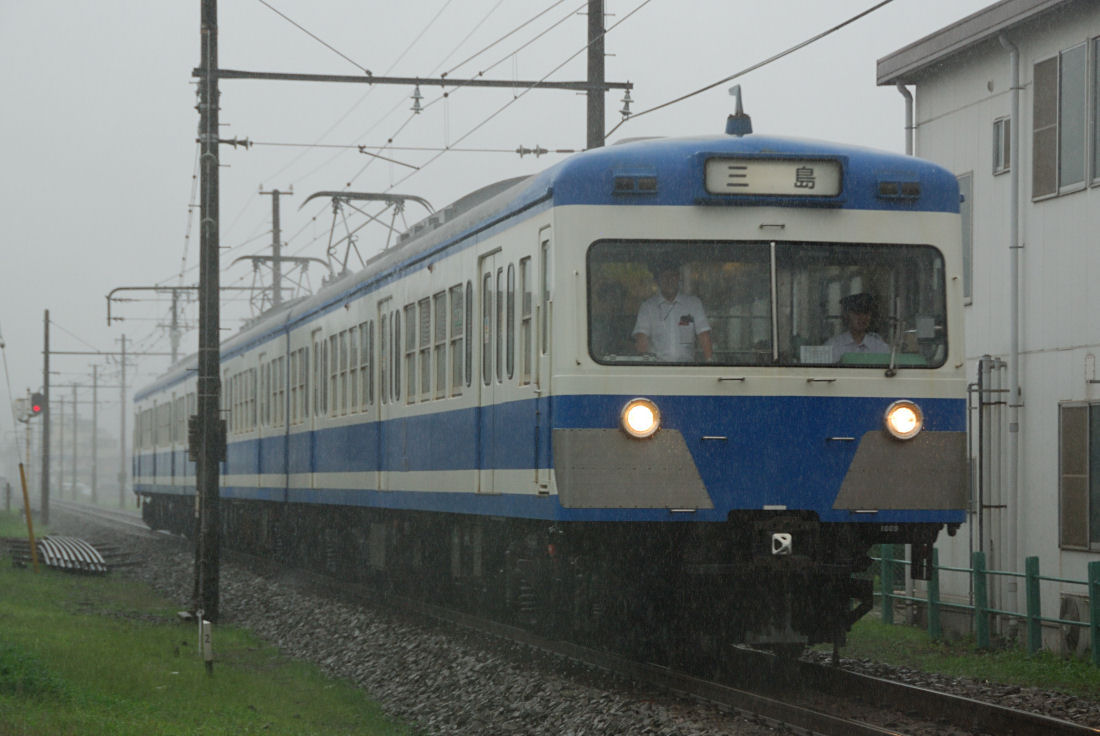 その後単機回送から2時間以上同じ場所で待ち続けました。かなり暑く辛いものがありました。有名撮影地とはいえ約30名もの方が集まりました。日もかなり傾いた頃になり、ようやくED32に牽かれた列車が通過しました。(撮影地:伊豆箱根鉄道駿豆線三島二日町〜大場間)