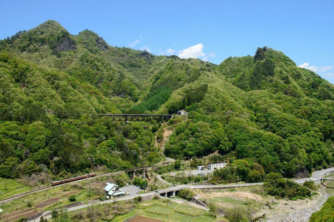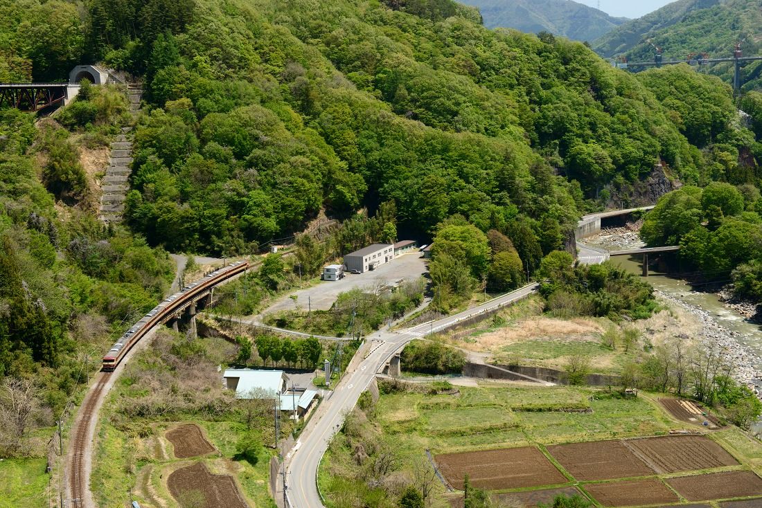この俯瞰、廃線になり列車が通らなくなるのは残念ですが、この撮影地もまた八ッ場ダム建設に伴い作られた道路があるからこそアプローチできるように場所です。言わば八ッ場ダム建設があったからこその場所、なんとも皮肉なことです。期間限定の絶景でした。