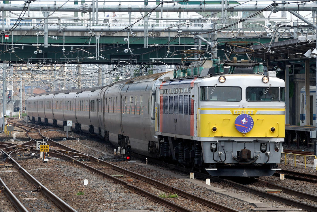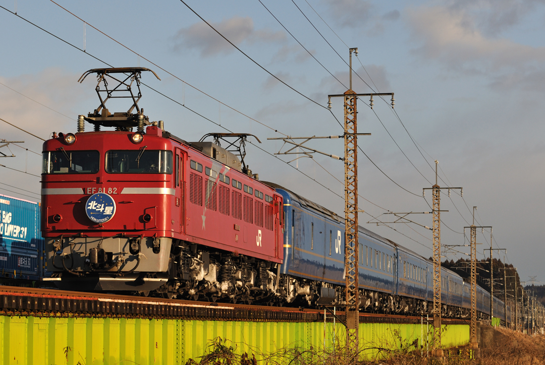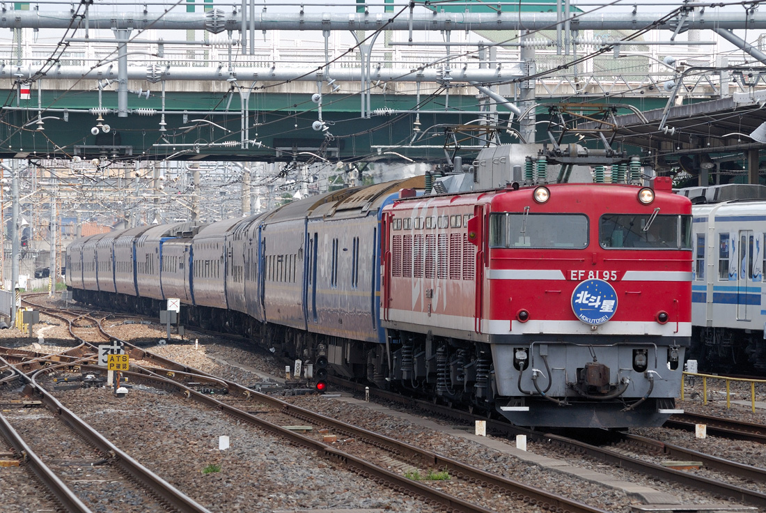 北斗星4号。またまたカシオペア牽引機のEF81-89が担当。側面にもいい感じで日が当たり、いい感じでした。(4レ)