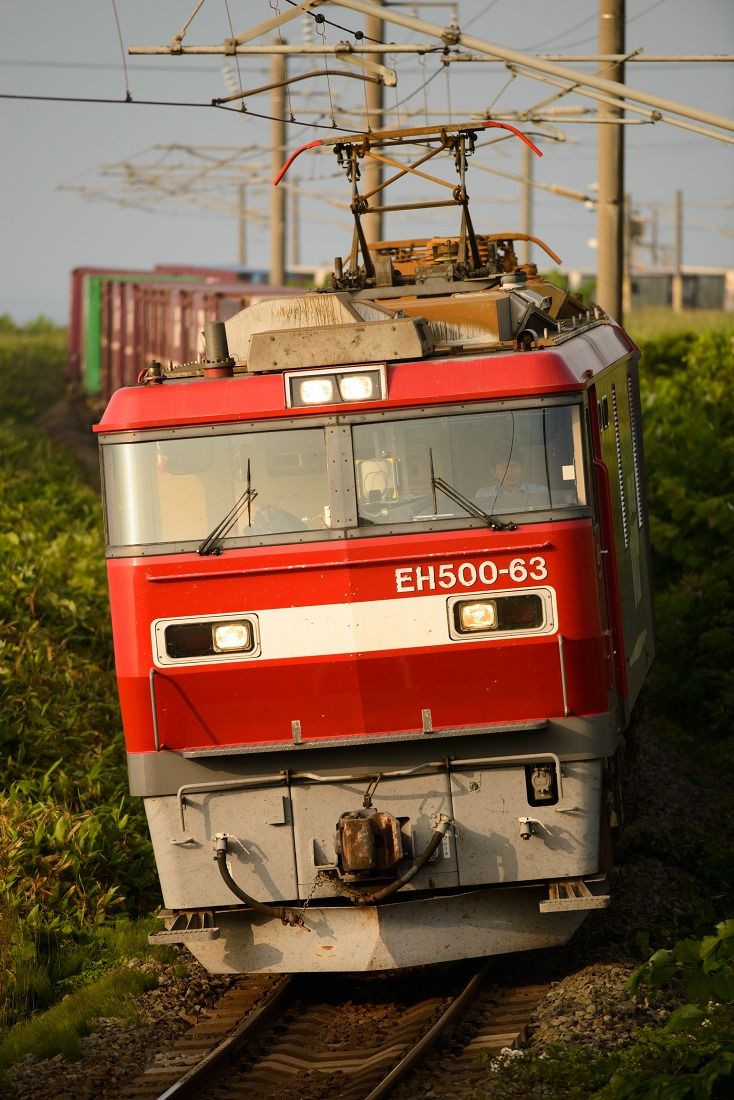 その後も日が高くなり、晴れに。早朝とあって、EH500の貨物がどんどん通過します。