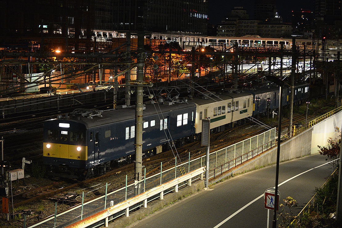 私の中では鉄道雑誌で見たことだけある車両、そんな車両が動くという話を聞いて半信半疑で深夜の品川へ。そこに広がっていた光景は深夜とは思えない撮り鉄の数。半信半疑でしたが、これで確信を持ちました。終電後の輸送とあって、撮る場所は限られていますので、「分かればいい」という体で撮りました。