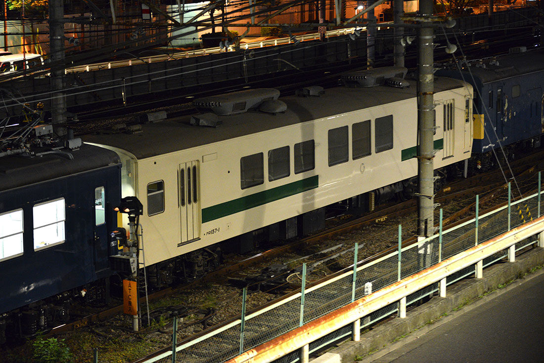 12月2日(日)の深夜、貴賓車であるクロ157-1のが東京総合車両センターへ回送されました。なんでも20年以上に渡って走行実績がなく、今までどこに保管されていたのかよくわかりませんでしたが、品川⇒大崎の山手線の線路をクモヤ143に挟まれて走行しました。
