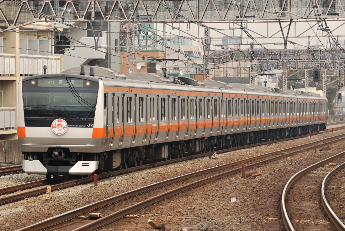 待っている間には120周年のヘッドマーク編成が来ました。まともに撮影したのは初めてだったような気がします。(撮影地:中央線西荻窪駅)