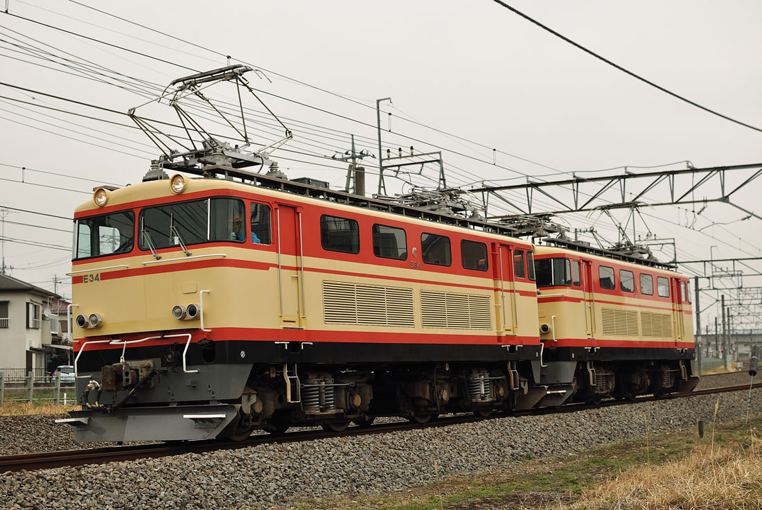 3月1日、←飯能 E34+E31の重単が小手指から所沢経由で武蔵丘まで回送されました。263Fによる牽引試運転が行われ動向が注目されますが、E31重連で武蔵丘に帰ってしまいましたので、3月6日〜7日かけて行われる甲種輸送は263F牽引で行われる可能性が濃厚となってきました。263Fは依然として小手指にいる模様です。