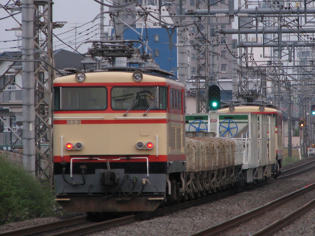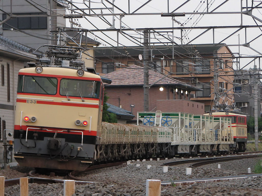 続いてもう1つEF81の話題が同日にありましたので、続けて紹介いたします。この日は水戸→新小岩(操)間でいわゆる水戸工臨が運転されました。EF81-57号機牽引で、荷はホキ8両でした。