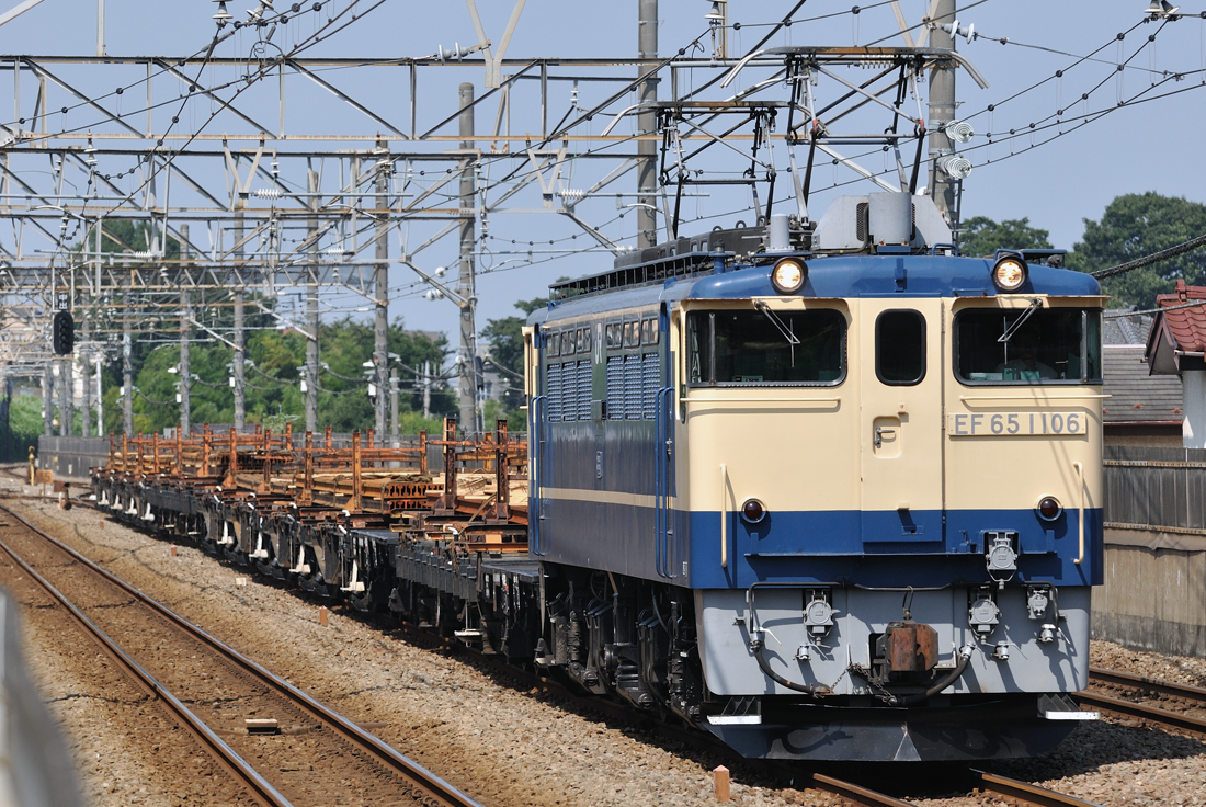 綺麗な青空の中を駆ける虹ガマ牽引の配給。(撮影地:武蔵野線東浦和〜東川口間)