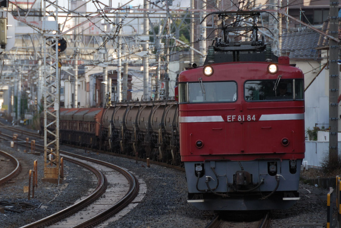所謂安中貨物(5781レ)です。EF81-84号機+タキ111B+トキ6Bの編成。今では殆ど見られないトキが連結される貨物列車として、人気のある貨物列車の一つですね。