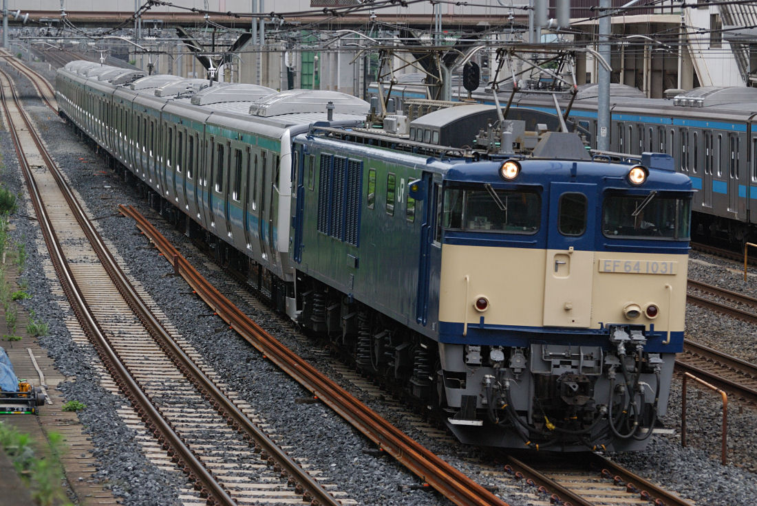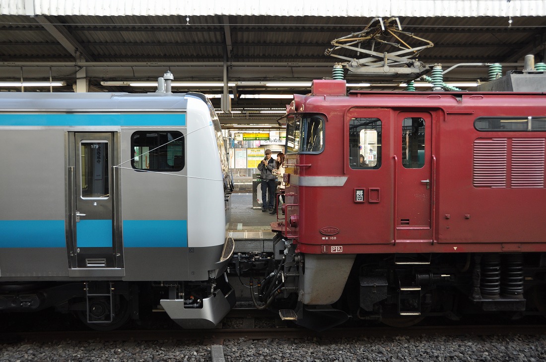 オクシナ夢空間の合間で貨物列車を撮影してみました。場所は"ヒガジュウ"の坂の上付近で、横手には東十条駅のホームが見える位置からです。東北貨物線の撮影地としては決していい場所とは言えないかもしれないですが、"旅客線撮ったついで貨物も撮りたい"という時には重宝します。(撮影地:東北線尾久〜赤羽、京浜東北線東十条付近)