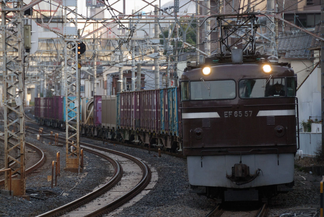 EF65-57号機牽引の貨物列車。所謂茶釜が充当されました。EF65-57+コキ1*B。(2073レ)