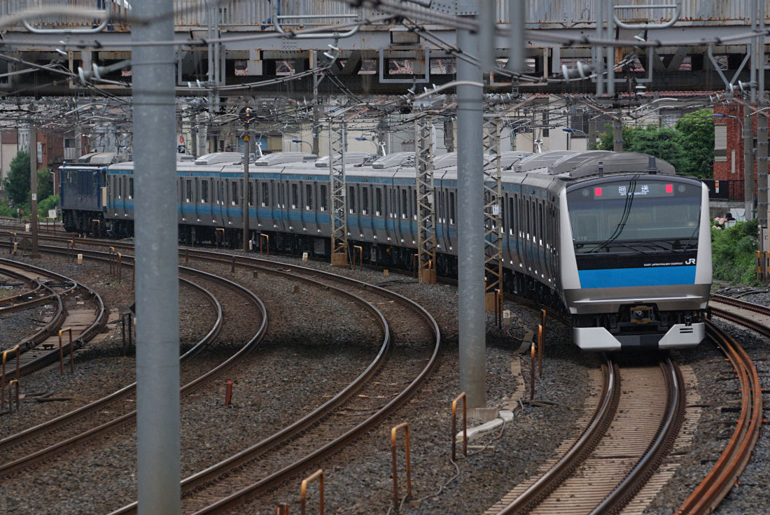 折角曇ってくれたのに若干前ピン。明るい単焦点レンズの絞りをかなり開けていたせいで、後ろボケ過ぎたのが失敗。(撮影地:武蔵野線東浦和〜東川口)
