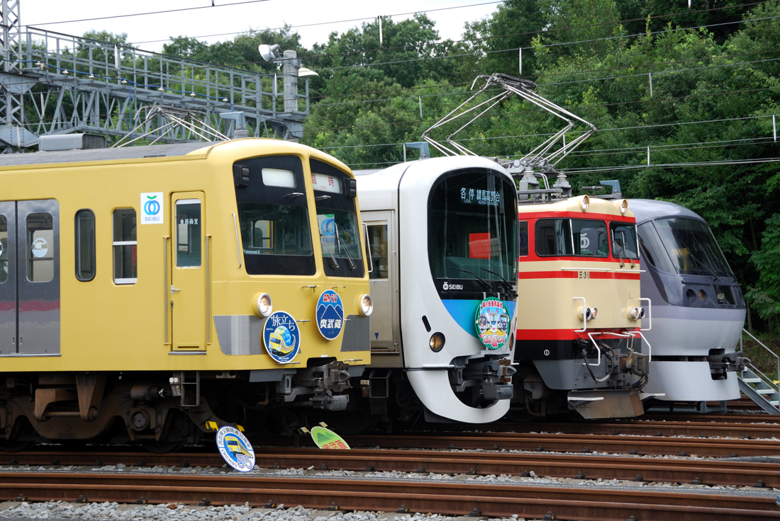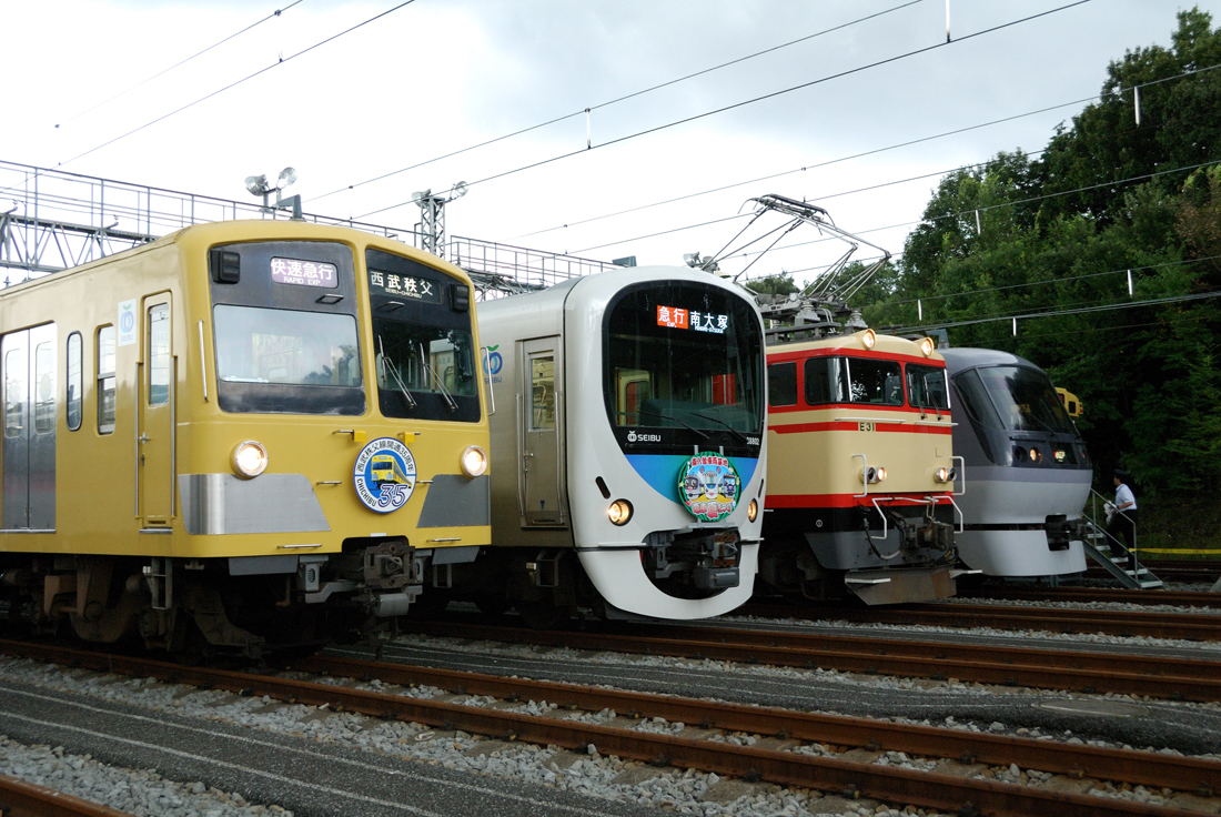 10月4日、横瀬車両基地で「西武トレインフェスティバル2009 in横瀬」が開催されました。会場へのアクセス列車として臨時快速急行が運転され、←飯能 241F+243Fのスカート無し車同士の新101系4+4という今となっては貴重なシーンを見ることができました。第二会場として設定された西武秩父駅には前日に回送されたE31形の三重単が展示されました。横瀬と西武秩父の会場アクセス列車として新101系のツートン車両271Fが横瀬〜西武秩父間を開催時間中往復していました。西武秩父線開業40周年を記念して、例年になく見所の多いイベントでした。