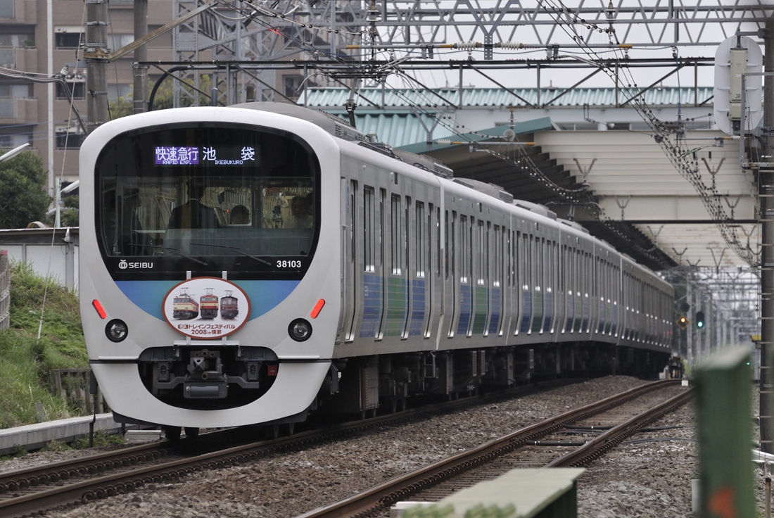 臨時快速急行の送り込み回送。241F+243Fというスカート無しコンビでした。この後臨時快急はまともな写真が一切ないので省略。池袋・西武秩父寄りが西武秩父線開業40周年ヘッドマーク、飯能側が奥武蔵のヘッドマークでした。(撮影地:西武池袋線西所沢〜小手指間)