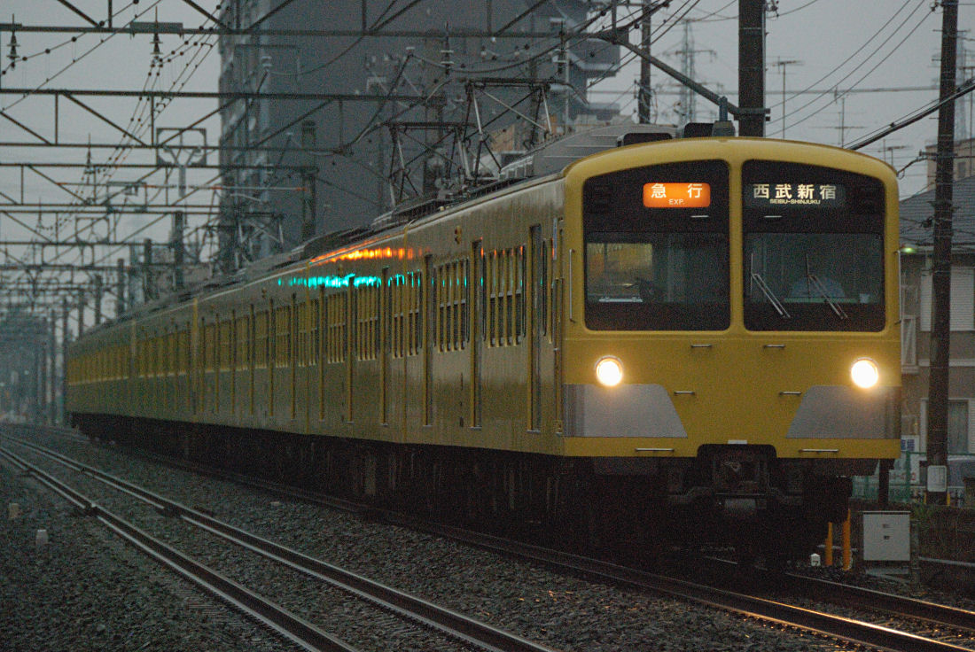 朝方の新宿線101系。(撮影地:西武新宿線新所沢〜入曽間・2624レ)