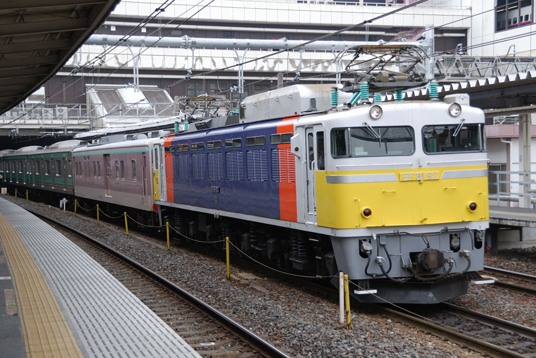 12月25日、相模線で使用されている205系R3編成が急遽品川から大宮まで配給されました。これは同編成が22日、入場回送中に故障を起したものによるものです。組成はEF81-81+マニ50-2186(ゆうマニ)+205系コツR3編成でした。なお故障したのは大井町〜大森間で、211系15両が故障したR3編成を推進回送することにより田町車両センターまで回送しました。