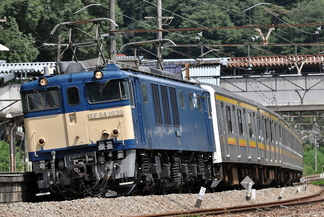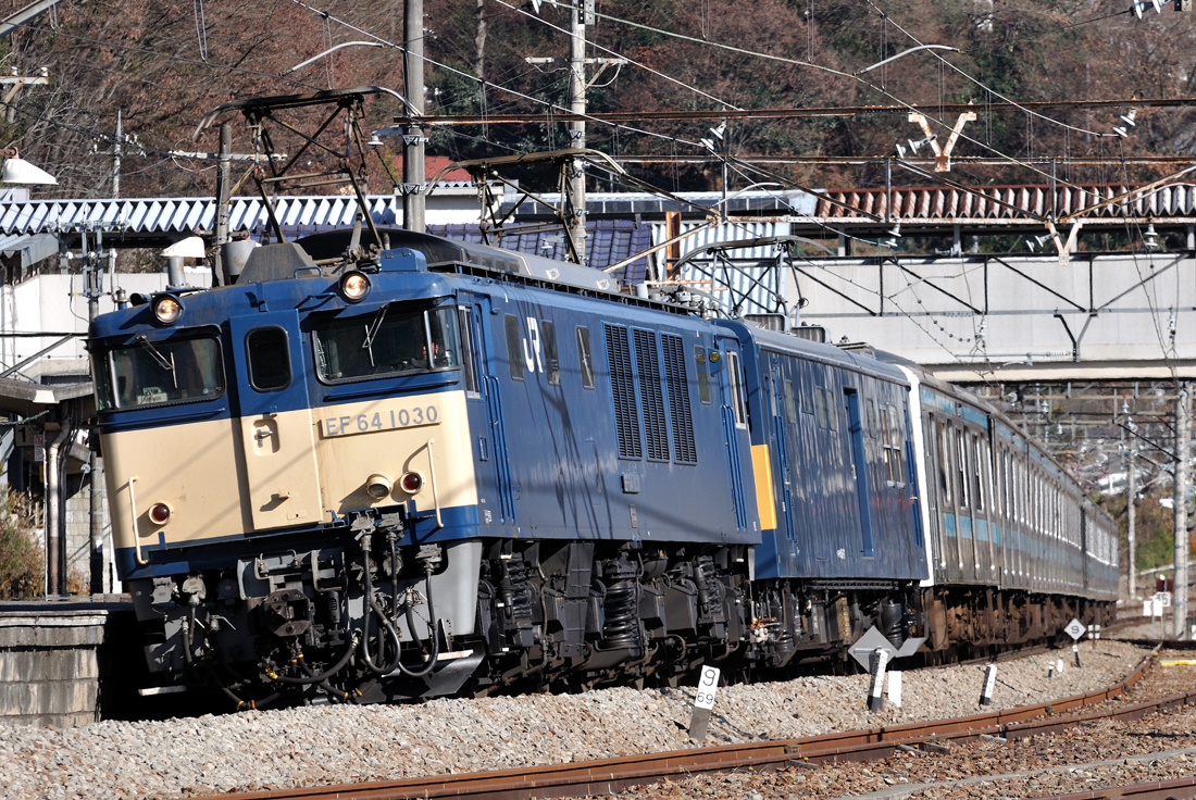 尾久に疎開されていた209系のうち6両が尾久→東大宮→東京総合車両センターの経路で配給されました。牽引は全区間EF64-1031号機でした。おそらく転用改造のための入場と思われます。(撮影地:東北貨物線田端操〜赤羽間 東十条付近)