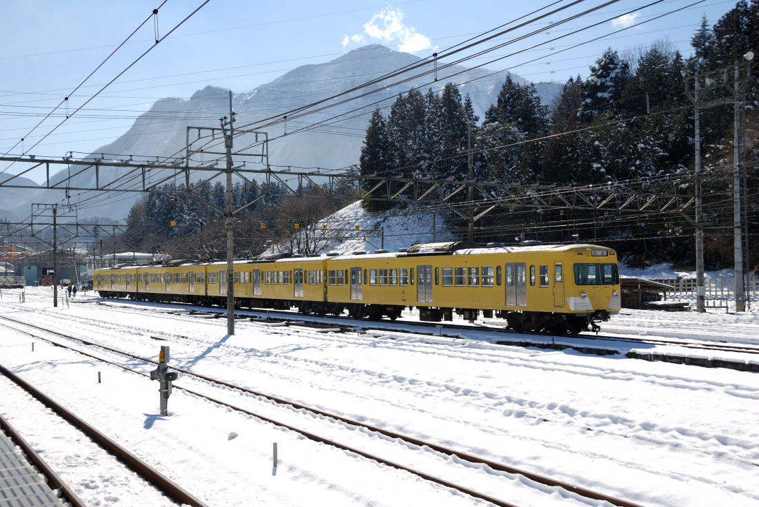 後続列車で追いかけましたが、結局横瀬まで追いつかず仕舞いでした。横瀬に降り立つとヤード線の中に225Fがいました。武甲山をバックに1枚。